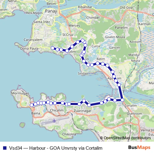 Click here to view the nearest Vsd34 - Harbour - GOA Unvrsty via Cortalim bus stop.