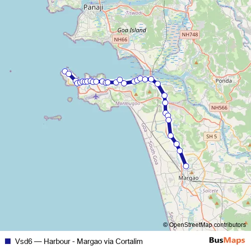 The first stop of the Vsd6 bus route is Harbour Vasco and the last stop is Margao KTC Bus Stand. Vsd6 (Harbour - Margao via Cortalim) is operational during everyday.