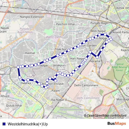 Delhi Transport Corporation Westdelhimudrika(+)Up bus Route Map