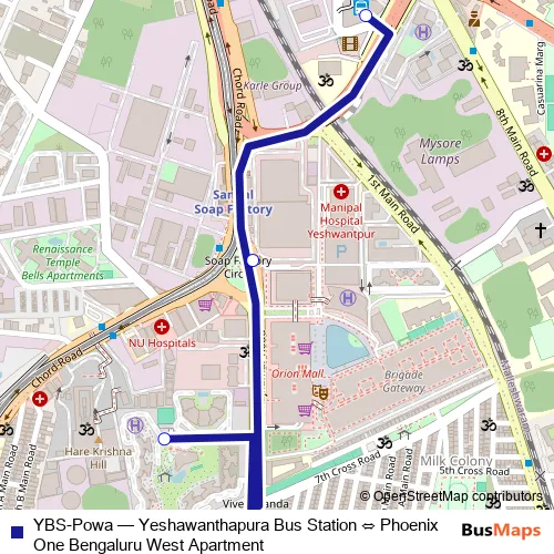 Click here to view the nearest YBS-Powa - Yeshawanthapura Bus Station ⇔ Phoenix One Bengaluru West Apartment bus stop.