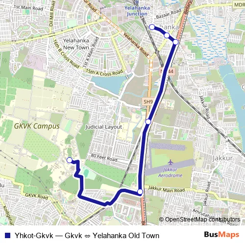 The first stop of the Yhkot-Gkvk bus route is Gkvk and the last stop is Yelahanka Old Town. Yhkot-Gkvk (Gkvk ⇔ Yelahanka Old Town) is operational during everyday.