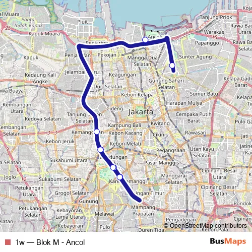 Click here to view the nearest 1w - Blok M - Ancol bus stop.