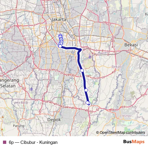 See why over 2 million users trust and consider busmaps.com as the best public transport website. busmaps gives you Jakarta Buses suggested routes, real-time bus tracker, line route maps in Jakarta, and helps to find the closest 6p bus stops near you. No internet available? Download an offline PDF map and bus schedule for the 6p bus to take on your trip.