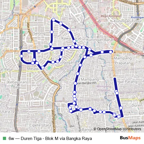 Bus 6w - Duren Tiga - Blok M via Bangka Raya: Full Schedule in Jakarta