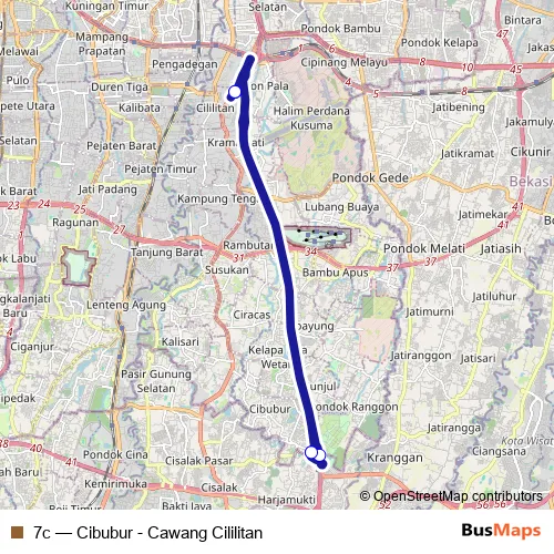 See why over 2 million users trust and consider busmaps.com as the best public transport website. busmaps gives you Jakarta Buses suggested routes, real-time bus tracker, line route maps in Jakarta, and helps to find the closest 7c bus stops near you. No internet available? Download an offline PDF map and bus schedule for the 7c bus to take on your trip.