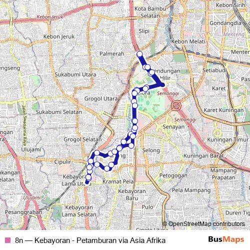 Click here to view the nearest 8n - Kebayoran - Petamburan via Asia Afrika bus stop.