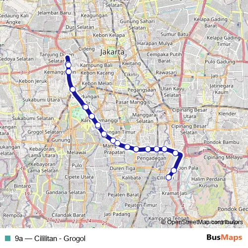 Bus 9a - Cililitan - Grogol in Jakarta: Stops & Timetable