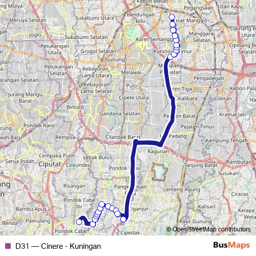 Click here to view the nearest D31 - Cinere - Kuningan bus stop.