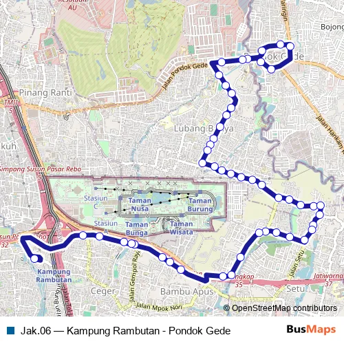 The first stop of the Jak.06 bus route is Pondok Molek and the last stop is Term. Kampung Rambutan. Jak.06 (Kampung Rambutan - Pondok Gede) is operational during everyday.