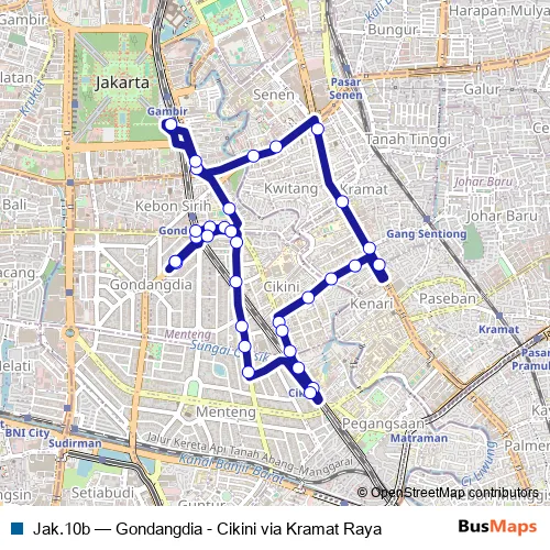 See why over 2 million users trust and consider busmaps.com as the best public transport website. busmaps gives you Jakarta Buses suggested routes, real-time bus tracker, line route maps in Jakarta, and helps to find the closest Jak.10b bus stops near you. No internet available? Download an offline PDF map and bus schedule for the Jak.10b bus to take on your trip.