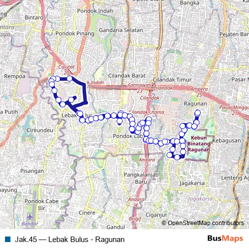 Bus Jak.45 - Lebak Bulus - Ragunan Schedule in Jakarta