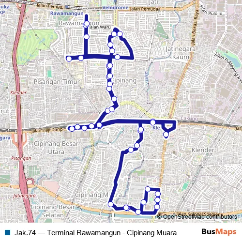 Click here to view the nearest Jak.74 - Terminal Rawamangun - Cipinang Muara bus stop.