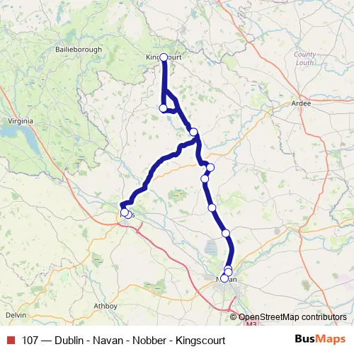 Click here to view the nearest 107 - Dublin - Navan - Nobber - Kingscourt bus stop.
