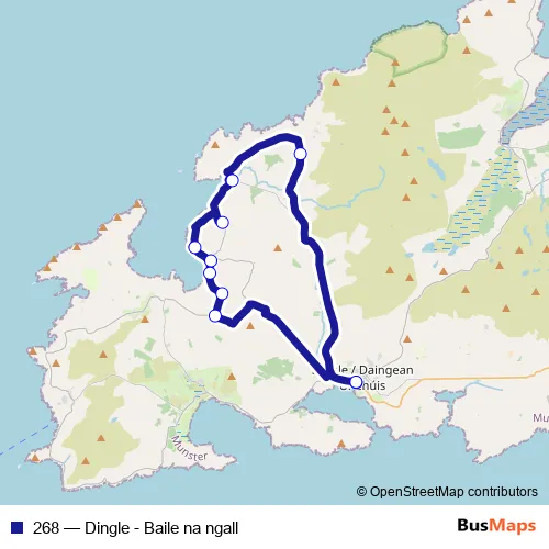 See why over 2 million users trust and consider busmaps.com as the best public transport website. busmaps gives you Dingle Buses suggested routes, real-time bus tracker, line route maps in Dingle, and helps to find the closest 268 bus stops near you. No internet available? Download an offline PDF map and bus schedule for the 268 bus to take on your trip.