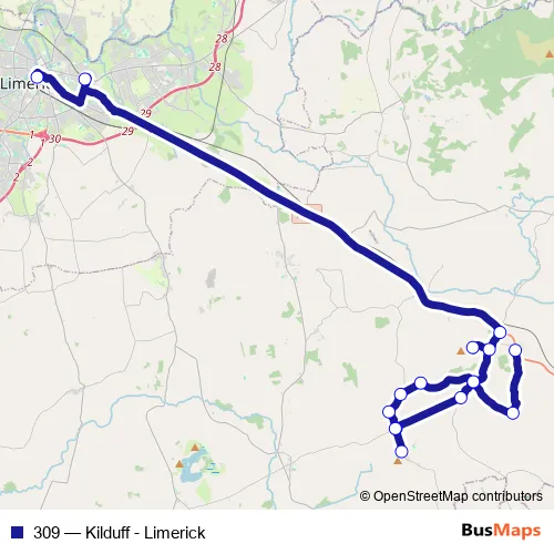 Bus 309 - Kilduff - Limerick in Pallasgreen: Stops & Timetable