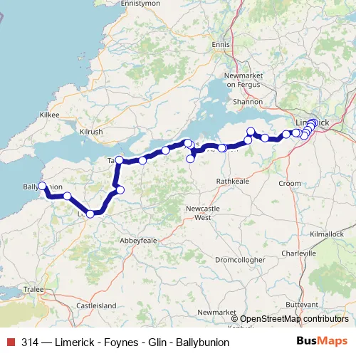 Bus 314 - Limerick - Foynes - Glin - Ballybunion in Limerick: Stops & Timetable
