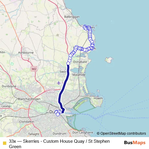 Click here to view the nearest 33x - Skerries - Custom House Quay / St Stephen Green bus stop.