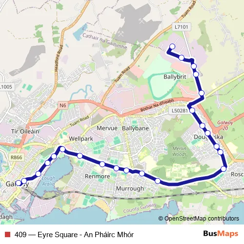 Click here to view the nearest 409 - Eyre Square - An Pháirc Mhór bus stop.