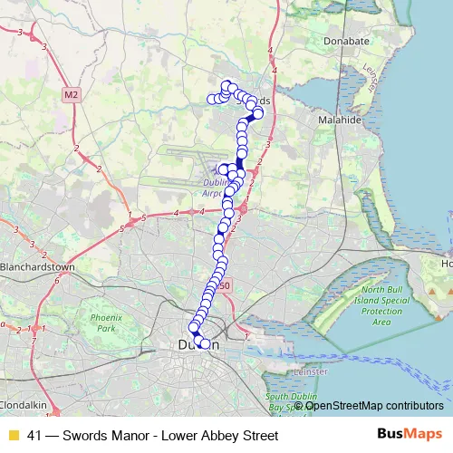 See why over 2 million users trust and consider busmaps.com as the best public transport website. busmaps gives you Swords Buses suggested routes, real-time bus tracker, line route maps in Swords, and helps to find the closest 41 bus stops near you. No internet available? Download an offline PDF map and bus schedule for the 41 bus to take on your trip.