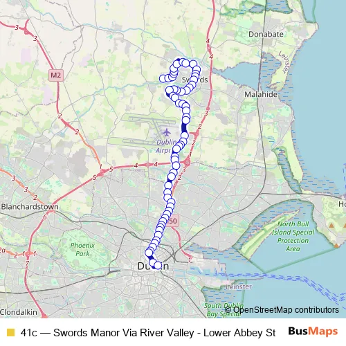 See why over 2 million users trust and consider busmaps.com as the best public transport website. busmaps gives you Swords Buses suggested routes, real-time bus tracker, line route maps in Swords, and helps to find the closest 41c bus stops near you. No internet available? Download an offline PDF map and bus schedule for the 41c bus to take on your trip.