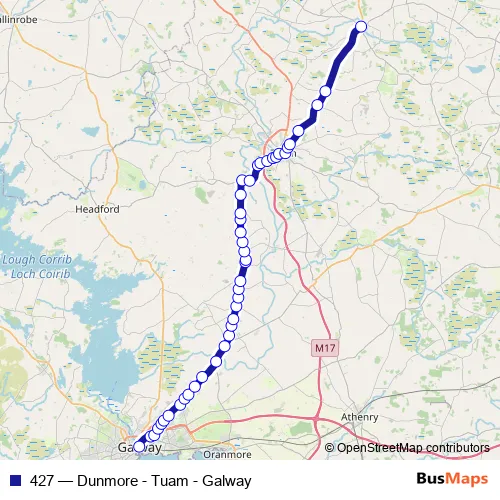 See why over 2 million users trust and consider busmaps.com as the best public transport website. busmaps gives you Galway Buses suggested routes, real-time bus tracker, line route maps in Galway, and helps to find the closest 427 bus stops near you. No internet available? Download an offline PDF map and bus schedule for the 427 bus to take on your trip.
