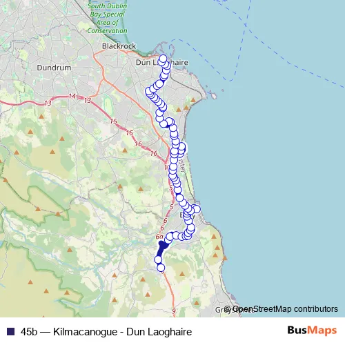 Click here to view the nearest 45b - Kilmacanogue - Dun Laoghaire bus stop.