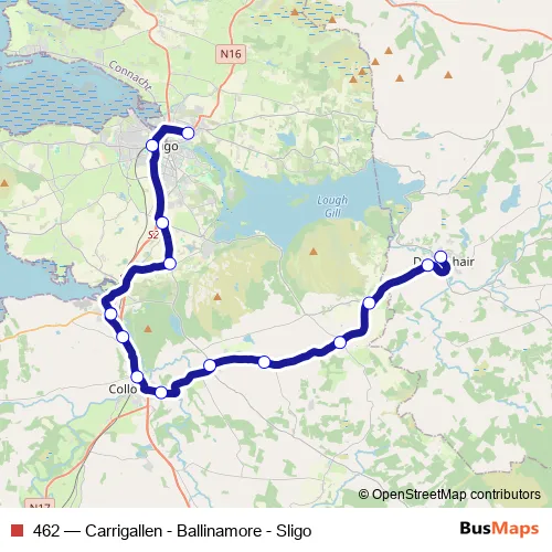 See why over 2 million users trust and consider busmaps.com as the best public transport website. busmaps gives you Sligo Buses suggested routes, real-time bus tracker, line route maps in Sligo, and helps to find the closest 462 bus stops near you. No internet available? Download an offline PDF map and bus schedule for the 462 bus to take on your trip.