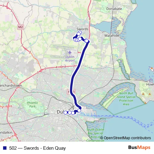 See why over 2 million users trust and consider busmaps.com as the best public transport website. busmaps gives you Swords Buses suggested routes, real-time bus tracker, line route maps in Swords, and helps to find the closest 502 bus stops near you. No internet available? Download an offline PDF map and bus schedule for the 502 bus to take on your trip.