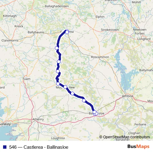 Bus 546 - Castlerea - Ballinasloe: Full Schedule in Ballinasloe