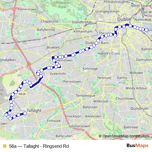 See why over 2 million users trust and consider busmaps.com as the best public transport website. busmaps gives you Dublin Buses suggested routes, real-time bus tracker, line route maps in Dublin, and helps to find the closest 56a bus stops near you. No internet available? Download an offline PDF map and bus schedule for the 56a bus to take on your trip.