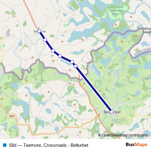 Bus 58d - Teemore, Crossroads - Belturbet in Cavan: Stops & Timetable