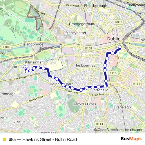 See why over 2 million users trust and consider busmaps.com as the best public transport website. busmaps gives you Dublin Buses suggested routes, real-time bus tracker, line route maps in Dublin, and helps to find the closest 68a bus stops near you. No internet available? Download an offline PDF map and bus schedule for the 68a bus to take on your trip.
