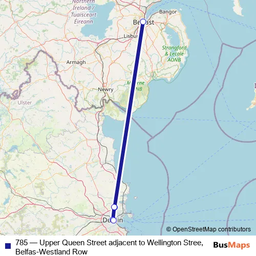 Bus 785 - Upper Queen Street adjacent to Wellington Stree, Belfas-Westland Row in Swords: Stops & Timetable