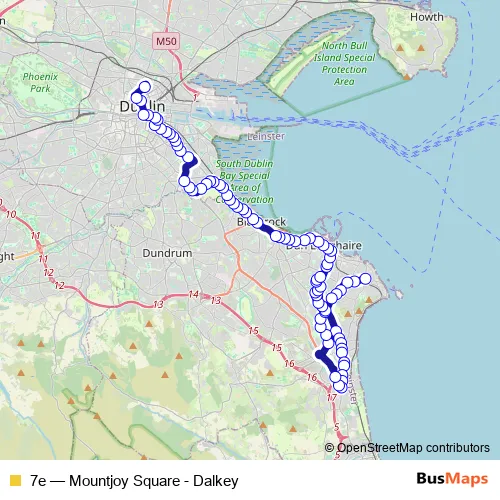 Bus 7e - Mountjoy Square - Dalkey: Full Schedule in Dublin