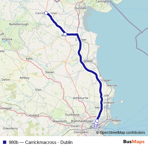 Bus 980b - Carrickmacross - Dublin: Full Schedule in Dublin
