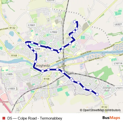 See why over 2 million users trust and consider busmaps.com as the best public transport website. busmaps gives you Drogheda Buses suggested routes, real-time bus tracker, line route maps in Drogheda, and helps to find the closest D5 bus stops near you. No internet available? Download an offline PDF map and bus schedule for the D5 bus to take on your trip.