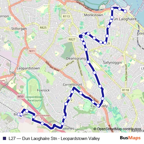 Click here to view the nearest L27 - Dun Laoghaire Stn - Leopardstown Valley bus stop.