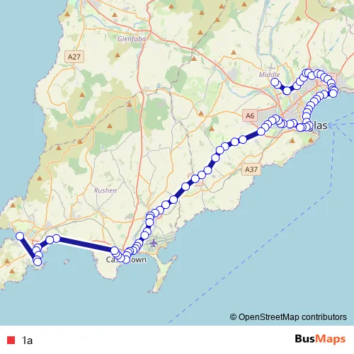 The first stop of the 1a bus route is Douglas, Lord Street and the last stop is Port Erin, Railway Station. 1a is operational during everyday.
