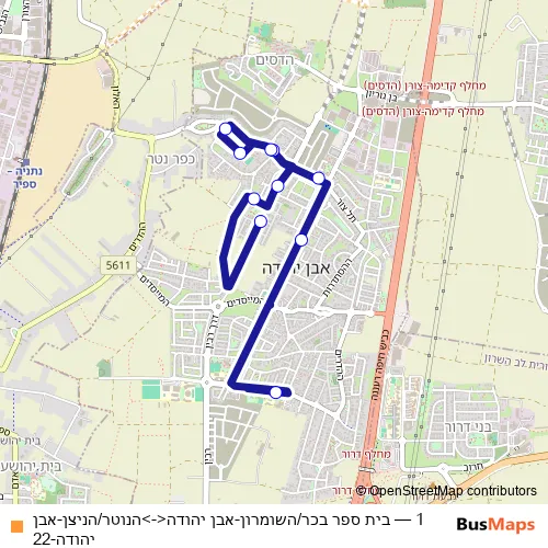 1 Bus - בית ספר בכר/השומרון-אבן יהודה<->הנוטר/הניצן-אבן יהודה-22