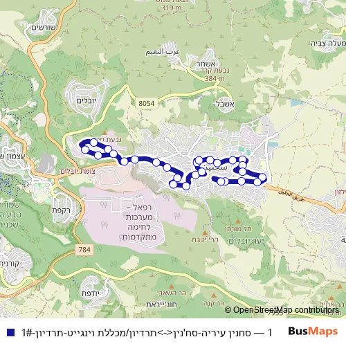 The first stop of the 1 bus route is Sakhnin Town Hall and the last stop is Teradyon/Wingate College. 1 (סחנין עיריה-סח'נין<->תרדיון/מכללת וינגייט-תרדיון-1#) is operational during everyday.