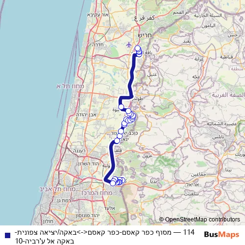 Bus 114 - מסוף כפר קאסם-כפר קאסם<->באקה/יציאה צפונית-באקה אל ע'רביה-10: Full Schedule in Kafr Qasim