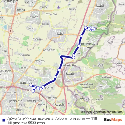 Bus 118 - תחנה מרכזית כפ'ס/רציפים-כפר סבא<->נחל איילון/כביש 5533-צור יצחק-1#: Full Schedule in Tsur Itshak