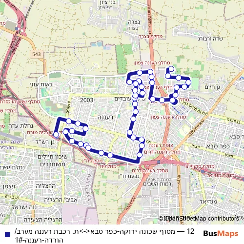Bus 12 - מסוף שכונה ירוקה-כפר סבא<->ת. רכבת רעננה מערב/הורדה-רעננה-1#: Full Schedule in Tel Aviv