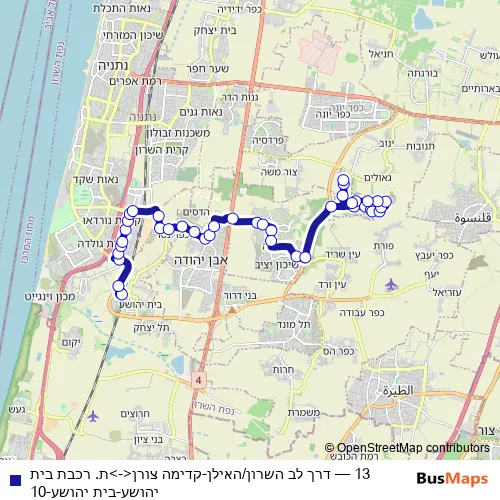 קווים 13 דרך לב השרון/האילן-קדימה צורן<->ת. רכבת בית יהושע-בית יהושע-10 Bus