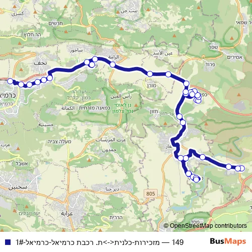 The first stop of the 149 bus route is Office and the last stop is Karmiel Train Station. 149 (מזכירות-כלנית<->ת. רכבת כרמיאל-כרמיאל-1#) is operational during everyday.