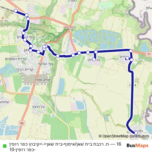 Click here to view the nearest 16 - ת. רכבת בית שאן/איסוף-בית שאן<->קיבוץ כפר רופין-כפר רופין-10 bus stop.