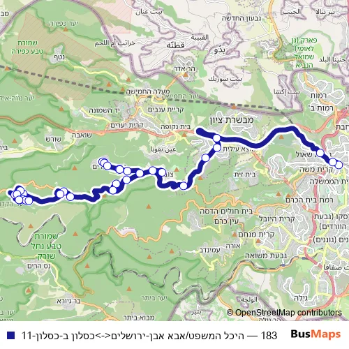 תנופה 183 היכל המשפט/אבא אבן-ירושלים<->כסלון ב-כסלון-11 Bus