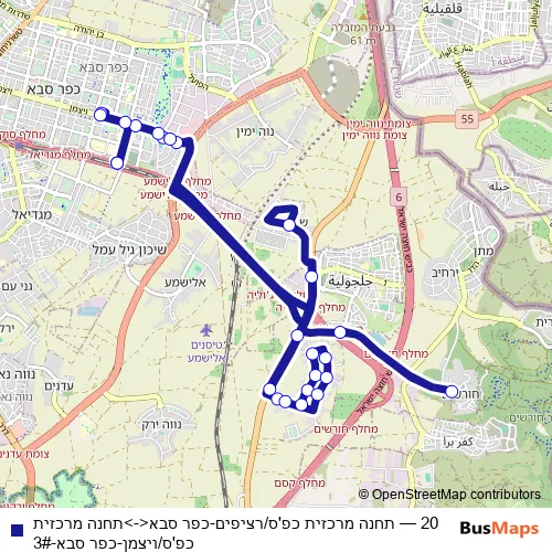 20 (תחנה מרכזית כפ'ס/רציפים-כפר סבא<->תחנה מרכזית כפ'ס/ויצמן-כפר סבא-3#) Bus in Hagor