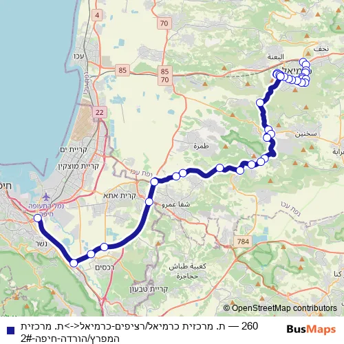 Bus 260 - ת. מרכזית כרמיאל/רציפים-כרמיאל<->ת. מרכזית המפרץ/הורדה-חיפה-2#: Full Schedule in Haifa