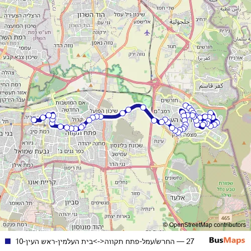 Bus 27 - החרש/עמל-פתח תקווה<->בית העלמין-ראש העין-10: Full Schedule in Tel Aviv